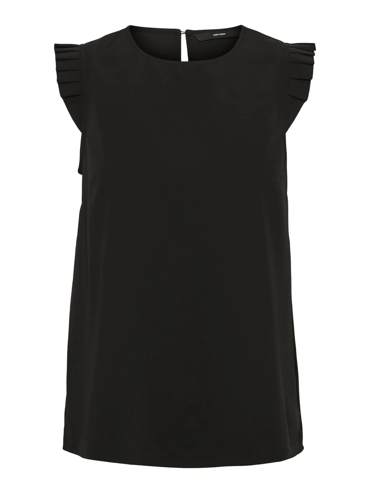 Blouse type: Blouseshirt; Design: Gevoerde zoom/rand, Figuurnaden, Keyholesluiting; Type sluiting: Knoopsluiting; Materiaal: Gerecycled materiaal; Halstype: Ronde hals; Motief: Effen; Kraag: Zonder kraag; Details: Plissé; Extra's: Op staal naden, Lichte stof; Pasvorm: Normale pasvorm; Armlengte: Mouwloos; Lengte: Normale lengte