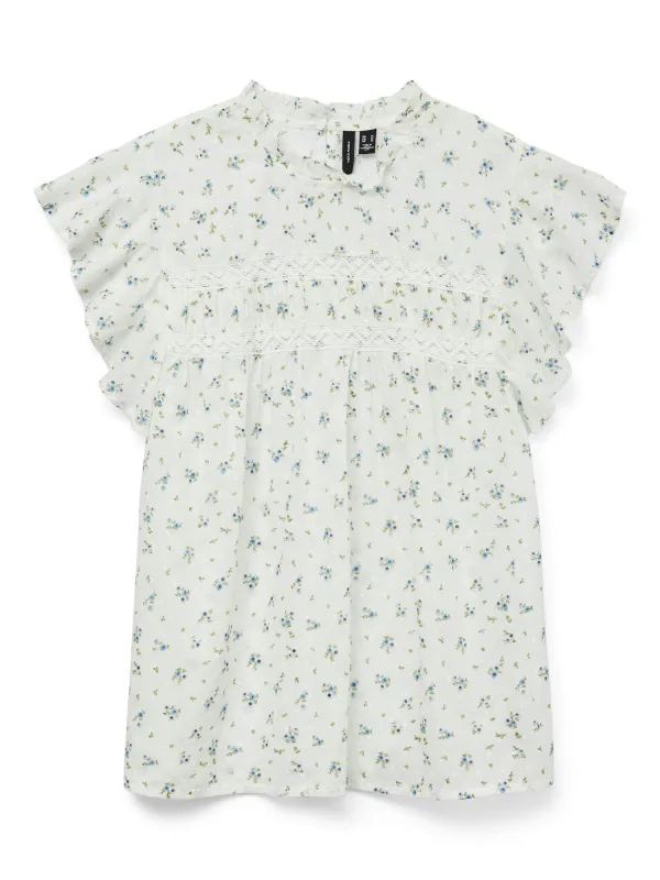 Blouse type: Blouseshirt; Design: Gevoerde zoom/rand, Ronde zoom; Type sluiting: Knoopsluiting; Materiaal: Katoen; Motief: Bloemenprint; Kraag: Opstaande kraag; Details: Cut-outs, Ruches, Kant, Volant, Gedrapeerd; Extra's: All-over patroon, Voelt zacht aan; Pasvorm: Normale pasvorm; Armlengte: Kwartmouw; Lengte: Normale lengte