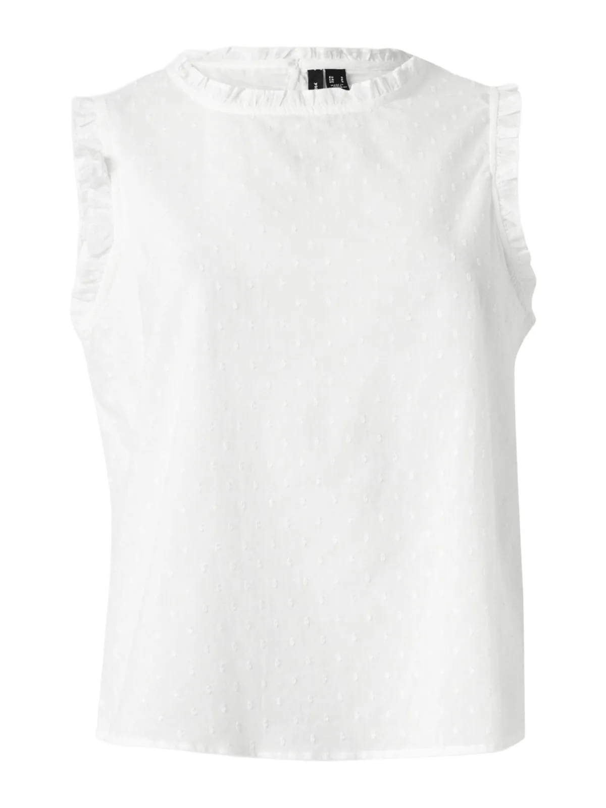Blouse type: Blouseshirt; Design: Gevoerde zoom/rand, Rechte zoom, Keyholesluiting; Type sluiting: Knoopsluiting; Materiaal: Katoen; Motief: Effen; Kraag: Zonder kraag; Details: Cut-outs, Ruches; Extra's: Op staal naden, Met textuur, Voelt zacht aan, Milieuvriendelijk geproduceerd; Pasvorm: Normale pasvorm; Armlengte: Mouwloos; Lengte: Normale lengte