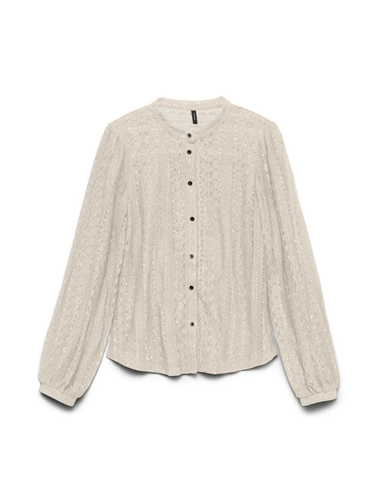 Blouse type: Klassieke blouse; Design: Placket, Ronde zoom; Type sluiting: Knoopsluiting; Kraag: Zonder kraag; Details: Kant, Gedrapeerd; Extra's: Licht transparant; Pasvorm: Normale pasvorm; Armlengte: Lange mouw; Lengte: Normale lengte