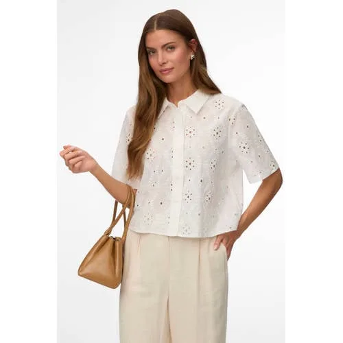 Voor een frisse, tijdloze basis in je garderobe is deze witte katoenen dames blouse van VERO MODA zeer geschikt. Het rechtvallende model met korte, rechte mouwen en klassieke kraag geeft een rustige uitstraling, terwijl de subtiele borduursels zorgen voor een verfijnd detail. Door de korte lengte oogt de blouse modern en luchtig, ideaal voor het voorjaar en zomerse dagen.Verfijnde details voor elke dag Gemaakt van 100% katoen, een soepele stof die prettig aanvoelt op de huid Klassieke kraag en knoopsluiting aan de voorkant voor een nette uitstraling Korte, rechte mouwen geven extra bewegingsvrijheid Effen wit ontwerp met subtiele borduursels voor een rustige, verzorgde look Rechtvallende pasvorm en korte lengte die mooi staat op een hoge taille jeans of rok Volgens maatadvies: dit artikel valt normaal Eenvoudig in onderhoud: wasbaar op 30 graden en warm strijkbaar (2 punten)Geschikt voor werk, weekend en daar tusseninDeze blouse past makkelijk in verschillende looks. Combineer met een nette pantalon voor een werkdag, of draag de blouse op een luchtige jeans voor een ontspannen vrije dag. Het effen witte ontwerp maakt het eenvoudig om te stylen met je favoriete sieraden.VERO MODA: moderne stijl voor elke dagVERO MODA richt zich op modieuze kleding die goed past in het dagelijks leven. De collecties volgen de trends, maar blijven draagbaar en toegankelijk. Zo voeg je met deze blouse eenvoudig een betrouwbaar item toe aan je kledingkast.Een lichte blouse die je het hele seizoen door kunt dragen.
