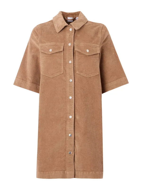 Design: Gevoerde zoom/rand, Drukknopen, Borstzak; Type sluiting: Drukknoop; Materiaal: Denim; Motief: Effen; Kraag: Kentkraag; Extra's: Op staal naden, Met textuur; Lengte: Knielengte; Snit: Recht; Pasvorm: Losse pasvorm; Armlengte: Halve mouw
