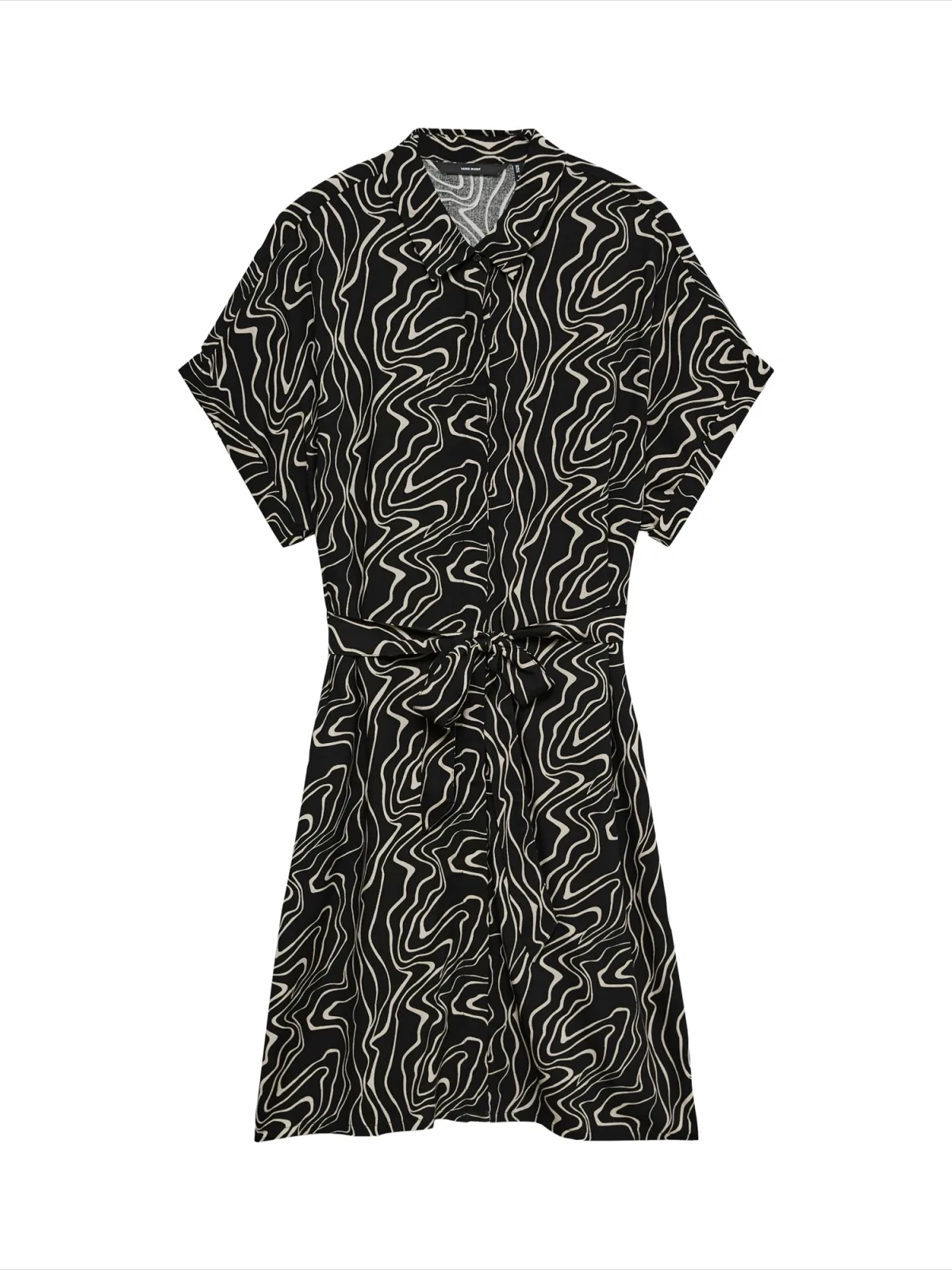 Design: Gevoerde zoom/rand, Tailleriem; Type sluiting: Knoopsluiting; Materiaal: Viscose; Halstype: Polokraag; Kraag: Kentkraag; Extra's: All-over patroon, Lichte stof; Lengte: Kort/mini; Snit: Getailleerd; Pasvorm: Normale pasvorm; Armlengte: Kwartmouw