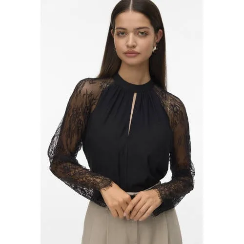 Damesblouse van Vero Moda;Model 'Milla';Look: effen;Pasvorm: Regular fit;Kraagmodel: Opstaande kraag;Sluiting: 2-knoopssluiting op de rug;Details: Kanten mouwen;Mouwvorm: lange mouwen ;Rugdecolleté: Druppelvormige cut-out;Ruglengte bij maat S: 59 cm;Borstomvang bij maat S: 47 cm;Mouwlengte bij maat S: 58 cm