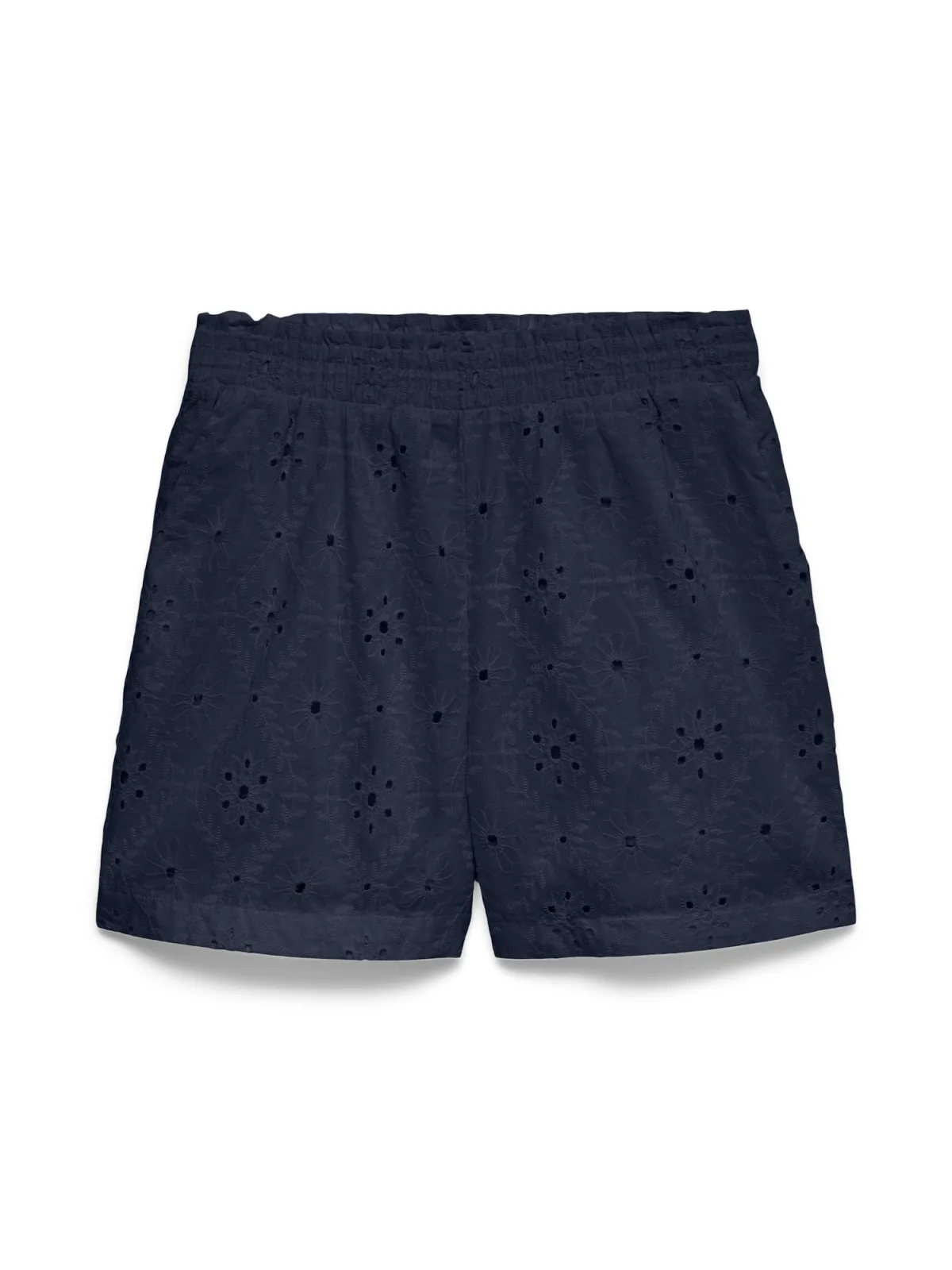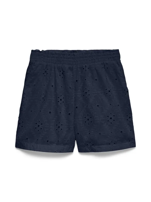 Dames korte broek van Vero Moda;Model 'Eliza';look: effen kleuren;Pasvorm: regular fit;Patroon: structuur;Details: ajourwerk;boord: elastisch;Zakken: steekzakken;Materiaal: puur katoen