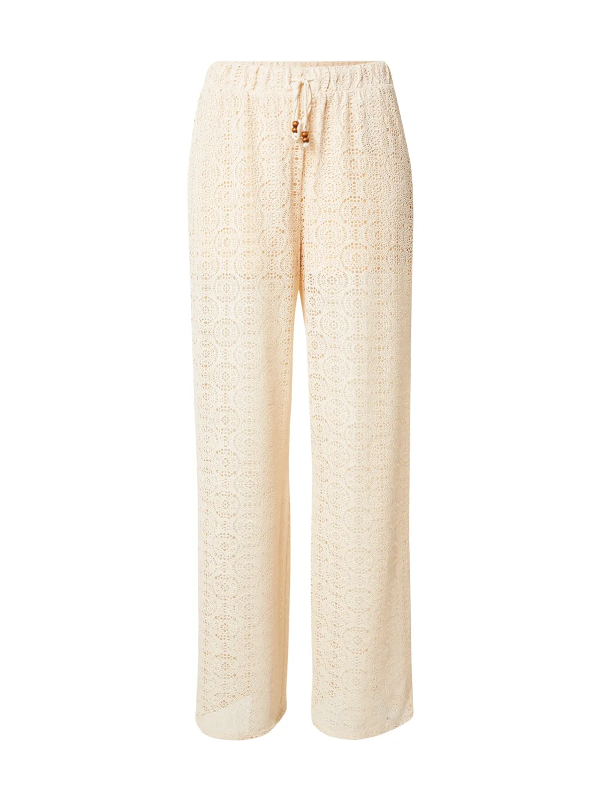 Dames wijdte broek van Vero Moda;Model 'Maya';Look: gebreide look;Pasvorm: regular fit;Details: semi-transparante garnering;sluiting: tunnelkoord;boord: elastisch;materiaalverwerking: knitwear