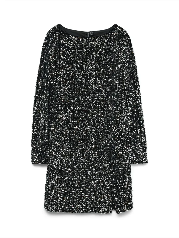 - Bij wehkamp.nl kun je VERO MODA jurk met pailletten zwart kopen voor slechts €12,00 , dat is 74% goedkoper dan bij Bol (€46,99).