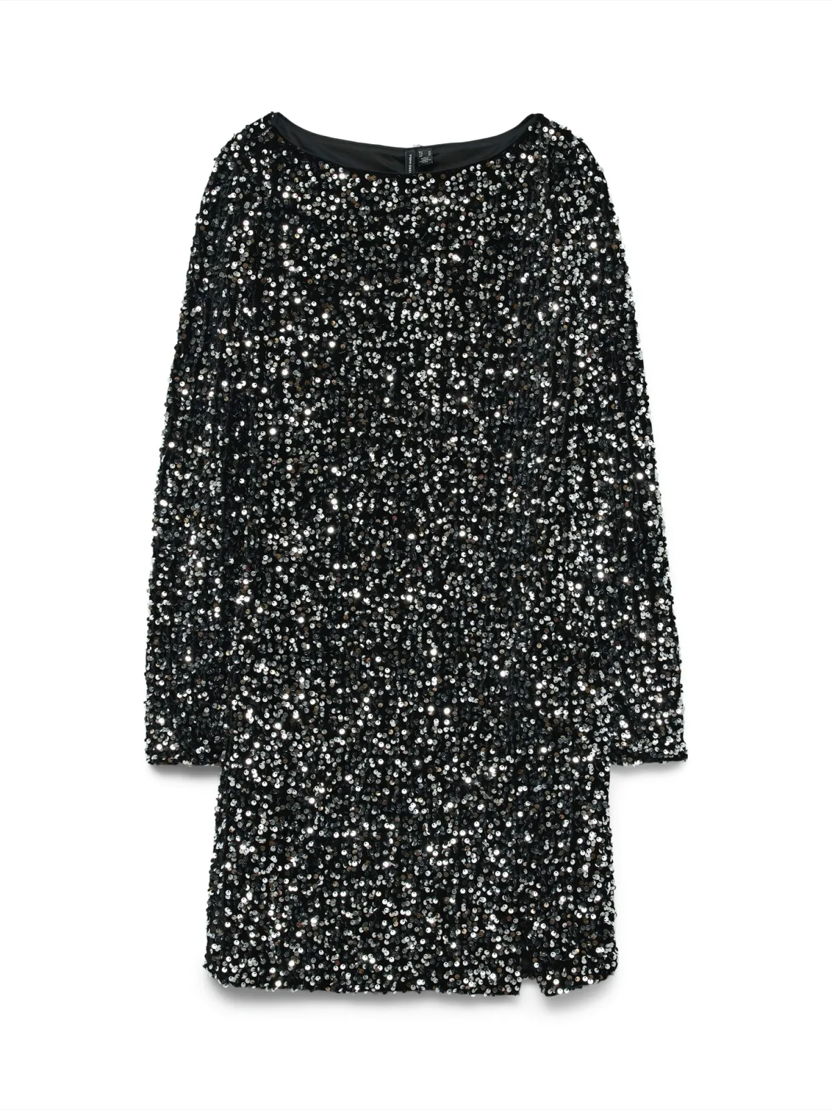 Design: Beenopening, Rechte zoom; Materiaal: Gerecycled materiaal; Halstype: Boothals; Motief: Effen; Details: Pailletten; Extra's: Glitterend, Applicaties; Lengte: Kort/mini; Snit: Getailleerd; Pasvorm: Slanke pasvorm; Armlengte: Lange mouw