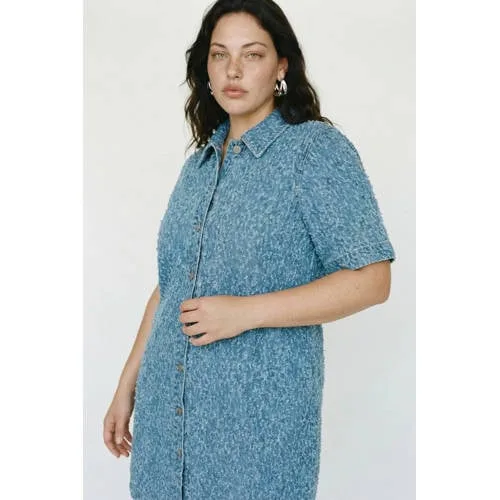 Deze VERO MODA CURVE spijkerjurk in light blue denim is een ontspannen basisstuk voor elke dag. De korte lengte, rechte mouwen en button down kraag geven een frisse, moderne uitstraling, terwijl de lichtblauwe wassing makkelijk te combineren is met je favoriete sneakers of sandalen. Gemaakt van 100% katoen voelt de stof stevig maar toch soepel aan.Dagelijkse denim met doordachte details Gemaakt van 100% katoen, voor een ademende en comfortabele feel op de huid Light blue denim kleur, eenvoudig te combineren binnen je dagelijkse garderobe Korte lengte en rechte mouwen, ideaal voor het lente- en zomerseizoen Button down kraag en volledige knoopsluiting aan de voorkant voor een nette afwerking Effen ontwerp met subtiel jacquard detail voor extra structuur in de stof Geen zakken, waardoor de jurk mooi glad langs het lichaam valt Geschikt voor grotere maten, met een pasvorm die normaal valt Onderhoudsvriendelijk: wasbaar op 30 graden en warm strijkbaar op stand tweeComfortabele keuze voor elke dagDe Vmcfenja denim jurk is onderdeel van de 'Daily' collectie en past goed in een casual daglook. Draag de jurk met sneakers voor een ontspannen uitstraling of met instappers voor een iets gekledere stijl. De knoopsluiting maakt het makkelijk om de halslijn aan te passen aan het moment.VERO MODA CURVE voor moderne silhouettenVERO MODA CURVE richt zich op modieuze styles in grotere maten, met aandacht voor pasvorm en draaggemak. De collecties volgen actuele trends, maar blijven tegelijk praktisch en toegankelijk. Met deze denim jurk voeg je een veelzijdig item toe dat gemaakt is om vaak en graag te dragen.Een lichte spijkerjurk die je snel uit de kast pakt voor een comfortabele dag.