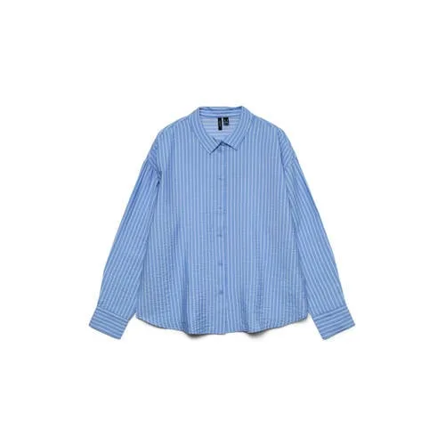Fris je dagelijkse garderobe op met deze VERO MODA CURVE blouse met lange mouwen in een heldere blauwe kleur. Het rechte, losvallende model geeft ruimte en bewegingsvrijheid, speciaal ontworpen voor grote maten, terwijl de verticale strepen optisch lengte creëren. Ideaal voor kantoor, een etentje of een casual dag, afhankelijk van hoe je de blouse combineert.Details die het verschil maken Klassieke kraag en knoopsluiting voor een rustige, nette uitstraling Geweven stof met rechte mouwen die mooi langs de armen vallen Streeppatroon dat het silhouet subtiel verlengt Gemaakt van viscose en nylon, waardoor de stof soepel en licht aanvoelt Geen borstzakken voor een rustige, clean voorkant Valt normaal volgens maatadvies, handig bij het kiezen van jouw maat Geschikt voor dagelijks gebruik binnen de 'Daily' collectieZo draag je deze blouse in het dagelijks levenVoor een werkdag staat deze blouse mooi op een donkere jeans of een nette pantalon. De knoopsluiting maakt het makkelijk om een paar knoopjes open te dragen met een top eronder. In het weekend combineer je de blouse eenvoudig met een comfortabele broek en sneakers.VERO MODA CURVE voor elke dagVERO MODA CURVE richt zich op modieuze kleding in grote maten, met aandacht voor pasvorm en draaggemak. De collecties sluiten aan op huidige trends en bieden tegelijkertijd toegankelijke, dagelijkse items die je vaak uit de kast pakt.Een veelzijdige blouse die elke dag weer een betrouwbare basis in je outfit vormt.