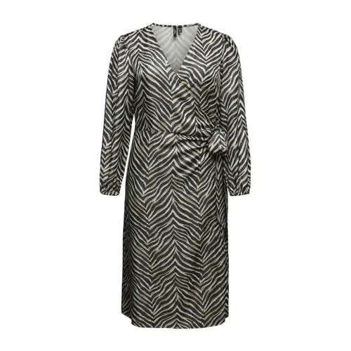 Deze VERO MODA CURVE jurk heeft een zebraprint en een geweven structuur. De v-hals en vouwsluiting maken het makkelijk om aan te trekken, rechte mouwen zorgen voor een comfortabele pasvorm.