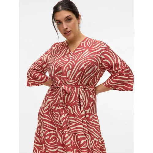 Deze VERO MODA CURVE korte rode jurk is een praktische basis voor elke dag. De soepel vallende, geweven stof volgt je bewegingen prettig en de V-hals met driekwart mouwen geeft een open uitstraling zonder bloot aan te voelen. De korte lengte maakt de jurk geschikt om te dragen met een panty en laarsjes, maar ook met sneakers of sandalen op warmere dagen.Comfortabele pasvorm en doordachte details Speciaal ontworpen voor grote maten, met ruimte op de juiste plekken en een vallende fit Gemaakt van 90% viscose en 10% nylon voor een soepele, licht luchtige stof Geweven kwaliteit die netjes oogt en geschikt is voor zowel werk als vrije tijd V-hals die het decolleté subtiel accentueert zonder diep te zijn Driekwart rechte mouwen, praktisch en prettig in elk seizoen Zonder sluiting, je trekt de jurk eenvoudig over je hoofd aan Korte lengte, goed te combineren met panty of legging Geschikt voor alle seizoenen, van herfstlaagje tot zomerse outfit Wasbaar op 30 graden en lauw strijkbaar, niet in de droogtrommel Valt normaal volgens het maatadviesVoor werk, weekend en alles ertusseninDeze jurk sluit makkelijk aan bij jouw dagelijkse garderobe. Combineer met enkellaarsjes en een lang vest voor kantoor, of draag de jurk met sneakers en een denim jacket voor een ontspannen weekend. Door de effen rode kleur wissel je eenvoudig af met verschillende tassen en sieraden.VERO MODA CURVE: stijl voor elke maatVERO MODA CURVE richt zich op moderne vrouwen die houden van kleding met een toegankelijke pasvorm en eigentijdse uitstraling. De collectie is ontworpen met oog voor silhouet en draaggemak, zodat je je vrij kunt bewegen en comfortabel gekleed gaat.Een jurk die je het hele jaar door op verschillende manieren draagt.