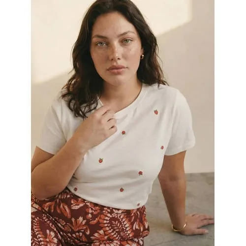 Dit VERO MODA CURVE katoenen T-shirt met all over print is een luchtige basic voor elke dag. De witte basis met subtiele print geeft een rustige, frisse uitstraling, terwijl de rechte pasvorm mooi aansluit op het lichaam. Dankzij het materiaal van 100% katoen voelt de stof zacht en soepel aan op de huid, ideaal voor het voorjaar en de zomer.Details die je graag aantrekt Gemaakt van 100% katoen, voor een zachte touch en prettig draagcomfort Korte, rechte mouwen voor een relaxed silhouet Ronde hals die mooi langs de halslijn valt All over print op een witte basis voor een rustige, dagelijkse look Onderdeel van de 'Daily' collectie, geschikt voor alledaags gebruik Valt normaal volgens het maatadvies, speciaal ontworpen voor grote maten Wasbaar op 40 graden en warm strijkbaar (2 punten) Niet drogen in de droogtrommel om de stof mooi te houdenGemakkelijk te combineren in jouw outfitsDit T-shirt is een praktische basis voor allerlei combinaties. Draag het boven een jeans of een rechte broek voor een eenvoudige dagelijkse look, of combineer het met een rok en sneakers voor een meer vrouwelijke stijl. De witte kleur met print past goed bij zowel lichte als donkere onderstukken.VERO MODA CURVE voor een goede pasvormVERO MODA CURVE richt zich op dames met een maatje meer en besteedt veel aandacht aan pasvorm in grotere maten. De modellen zijn afgestemd op ronde vormen, zodat de kleding goed zit en natuurlijk valt. Zo kies je voor items met een actuele stijl die aansluiten op jouw lichaam en dagelijkse leven.Een toegankelijke basic die je makkelijk uit de kast pakt voor een casual, moderne look.