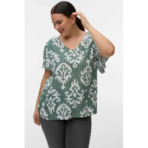 De VERO MODA CURVE top Vmceasy Joy V-Neck Ss Blouse is een lichte, rechtvallende blouse die je garderobe eenvoudig aanvult. De all over print geeft direct karakter aan je outfit, terwijl de V-hals en korte mouwen zorgen voor een luchtige uitstraling. Gemaakt van 100% viscose voelt deze geweven blouse soepel aan op de huid en valt deze blouse mooi recht langs het lichaam.Details die het verschil maken Rechtvallende pasvorm die comfortabel langs het lichaam valt V-hals die de halslijn subtiel accentueert Korte mouwen, ideaal voor warmere dagen of onder een vest All over print voor een speelse, modieuze look Gemaakt van 100% viscose, een zachte stof met een soepele valling Geweven kwaliteit zonder zakken voor een rustige, strakke uitstraling Maatadvies: dit artikel valt normaalEenvoudig te combineren in jouw dagelijkse stijlDeze blouse laat zich makkelijk combineren met een donkere jeans, een nette broek of een rok. Door de rechtvallende pasvorm draag je de top los over je broek of deels ingestopt aan de voorkant. Onder een blazer of vest blijft de V-hals mooi zichtbaar en komt de print goed tot zijn recht.VERO MODA CURVE: stijl met aandacht voor pasvormVERO MODA CURVE ontwerpt kleding met een vrouwelijke pasvorm en moderne uitstraling. De focus ligt op toegankelijke mode met een goede fit, zodat je kunt rekenen op kleding die prettig zit en aansluit bij jouw stijl.Een veelzijdige blouse die je zowel ontspannen als gekleed kunt dragen, passend bij veel momenten op de dag.