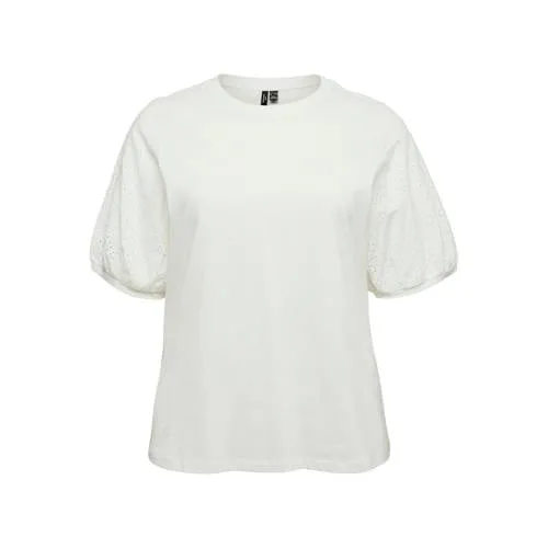 Fris, licht en veelzijdig, deze witte katoenen top met pofmouwen voor dames van VERO MODA CURVE is een praktische basic voor elke dag. De effen witte kleur combineer je makkelijk met je favoriete jeans, rok of korte broek. De ronde hals en korte mouwen met subtiele pof zorgen voor een vrouwelijke uitstraling, terwijl het materiaal van 100% katoen zacht aanvoelt op de huid.Details die je elke dag wilt dragen Gemaakt van 100% katoen, voelt zacht en ademend aan Effen witte kleur, makkelijk te combineren in allerlei outfits Korte mouwen met pofmouwen voor een moderne, vrouwelijke look Ronde hals die mooi rond de halslijn valt Geschikt voor dagelijkse looks uit de 'Daily' collectie Maatadvies: dit artikel valt normaal, kies je gebruikelijke maat Wasbaar op 40 graden, warm strijkbaar (2 punten) Niet drogen in de droogtrommel om de stof mooi te houdenComfortabele top voor elke dagDeze top is geschikt voor lente en mildere dagen. Draag de top op een high waist jeans voor een casual look of combineer met een nette broek voor een eenvoudige kantooroutfit. De pofmouwen geven net wat extra uitstraling, terwijl het lichte katoen comfort biedt tijdens je dagelijkse activiteiten.VERO MODA CURVE voor grote matenVERO MODA CURVE richt zich speciaal op grote maten en biedt kledingstukken met een pasvorm die is afgestemd op rondere vormen. De collecties sluiten aan bij de stijl van VERO MODA, maar dan met aandacht voor proporties en draagcomfort in grotere maten. Zo kun je kiezen voor items die er eigentijds uitzien en comfortabel zitten in het dagelijkse leven.Een luchtige basic die je garderobe rustig en toch eigentijds aanvult.