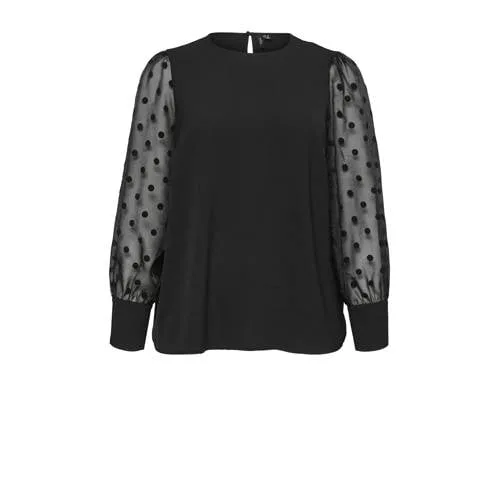 Deze VERO MODA CURVE top heeft rechte mouwen en een ronde hals. De top is gemaakt van 100% polyester, mesh details geven het model een luchtig accent en de lange mouwen zorgen voor een rustige uitstraling.