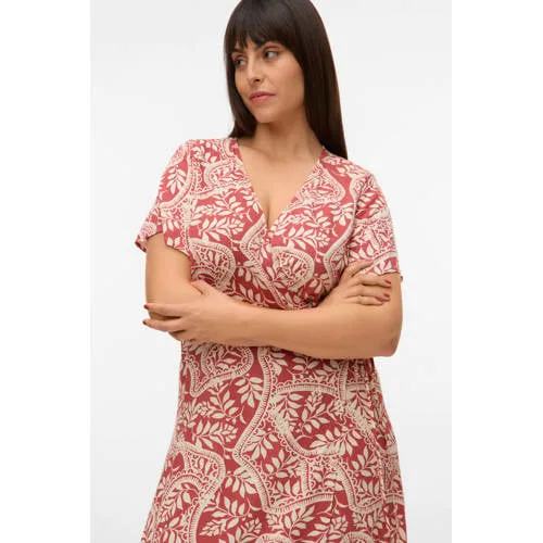 VERO MODA CURVE wikkel-/overslagjurk roodbruin