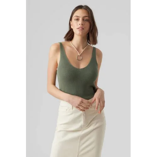 Deze top voor dames van VERO MODA is gemaakt van een viscosemix. Het mouwloze model heeft een V-hals.details van deze top:stijlnaam: VMNEWLEXfijn gebreid