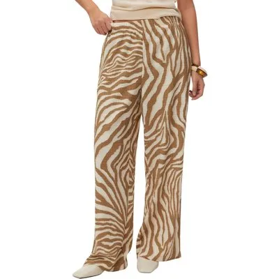 Specificaties: * Pasvorm: wide leg fit; hoge taille * Kleur: bruin - wit * Materiaal: 99% polyester - 1% elastaan