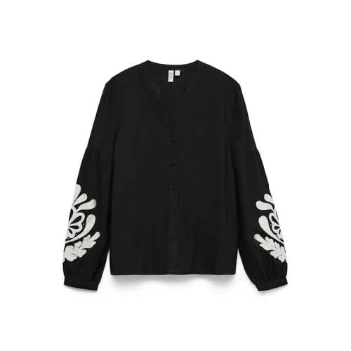 Voor een vrouwelijke, dagelijkse look is dit VERO MODA katoenen dames shirt met lange mouw een praktische basis. De top is uitgevoerd in zwart/ecru met subtiele bloemenborduursels, wat zorgt voor een verzorgde uitstraling zonder te uitgesproken te zijn. Door de rechte pasvorm valt het losjes om je lichaam, terwijl de V-hals en knoopsluiting voor een nette afwerking zorgen.Details die elke dag kloppen Gemaakt van 100 procent katoen, voelt zacht en ademend aan op de huid Zwart/ecru dessin met bloemige borduursels voor een vrouwelijke uitstraling Lange, rechte mouwen die losjes om de armen vallen V-hals met knoopsluiting voor een licht open halslijn Rechtvallend model, volgens maatadvies valt het artikel normaal Geschikt voor dagelijks gebruik in het voorjaar en het hele jaar door binnen Eenvoudig te onderhouden, wasbaar op 30 graden en lauw strijkbaarTop voor werk en vrije tijdDeze zwarte top combineer je met een jeans of met een nette broek. Door de rustige kleuren en de natuurlijke stof is het een kledingstuk dat geschikt is voor werk, etentjes of een dagje weg.VERO MODA in jouw kledingkastVERO MODA staat bekend om toegankelijke mode die meegaat met trends en tegelijk draagbaar blijft voor elke dag. Met aandacht voor pasvorm en fijne stoffen biedt het merk kleding die je eenvoudig combineert en die je vaak kunt dragen.Een rustige basic die goed past in je garderobe.