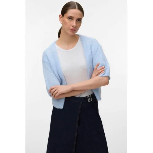 Maak je dagelijkse look compleet met dit lichtblauw gebreid damesvest van VERO MODA. Het korte, rechtvallende model uit de VMMAYBE lijn is ideaal als extra laagje op frisse lentedagen. De ronde hals, korte mouwen en het ontbreken van een sluiting geven een open, luchtige uitstraling die mooi valt over een T-shirt, top of jurkje.Details die je elke dag draagt Kort vest voor een moderne, frisse look Korte, rechte mouwen die veel bewegingsvrijheid geven Open model zonder sluiting, makkelijk aan en uit te trekken Rechtvallende pasvorm die mooi langs het lichaam valt Zachte, gebreide stof met een comfortabele touch Lichtblauwe kleur die goed combineert met neutrale en denim tinten Effen design, eenvoudig te stylen bij verschillende outfits Geen zakken voor een rustige, cleane uitstralingPerfect voor jouw dagelijkse outfitsDit vest komt uit de daily collectie en is gemaakt voor alledaags gebruik. Draag het over een eenvoudige top met je favoriete jeans voor een relaxed geheel, of combineer het met een soepel jurkje voor wat extra warmte op kantoor of onderweg. Het korte model laat je taille zien en staat mooi bij zowel hoge broeken als rokken.VERO MODA: moderne stijl voor elke dagVERO MODA staat bekend om modieuze items die makkelijk te combineren zijn en passen bij een druk dagelijks leven. De collecties volgen de trends, maar blijven draagbaar en toegankelijk. Met dit vest haal je een betrouwbaar basisstuk in huis waar je keer op keer naar grijpt.Een comfortabel, licht vest dat je garderobe rustig aanvult en veel draagmomenten biedt.