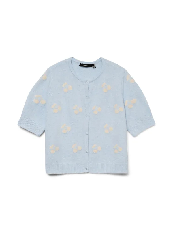 Gebreid damesjack van Vero Moda;Model 'Doffy Intarsia';Look: effen, all-over motief;Pasvorm: Slim fit;Sluiting: enkele knoopsluiting;Motief: bloemen;Kraagmodel: Hoge ronde hals;Hals: ronde hals;Mouwvorm: korte mouwen;Mouwboord: geribd;Rompzoom: geribd;Materiaalverwerking: Knitwear