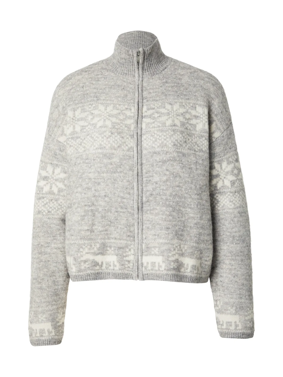 Design: Geribbelde kraag, Rechte zoom, Geribd ceintuurtje; Type sluiting: Ritssluiting; Materiaal: Knitwear; Halstype: Opstaande kraag; Motief: Winterse print; Extra's: All-over patroon, Fully fashioned, Voelt zacht aan; Pasvorm: Normale pasvorm; Armlengte: Lange mouw; Lengte: Normale lengte