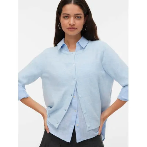 Op zoek naar een licht vest dat je makkelijk over alles heen aantrekt? Dit VERO MODA vest Vmdoffy 2/4 O-Neck Button Cardigan Noos is een praktische basic voor elke dag. De rechte pasvorm en korte mouwen geven een moderne uitstraling, terwijl de ronde hals en knoopsluiting het vest rustig en tijdloos houden. Ideaal voor over een T-shirt, top of jurk, zowel naar je werk als in je vrije tijd.Praktische details voor dagelijks gebruik Rechtvallende pasvorm voor een ontspannen, comfortabele look Korte, rechte mouwen die fijn zijn in het voorjaar en op frisse zomerdagen Ronde hals die mooi aansluit en goed combineert met verschillende halslijnen Knoopsluiting aan de voorkant, zodat je het vest open of dicht kunt dragen Gemaakt van 94 procent polyester, drie procent nylon en drie procent elastaan voor een soepele stof met lichte stretch Effen design zonder zakken voor een rustige, makkelijk te stylen uitstralingEen gebreid vest voor veel momentenDit gebreide vest past goed bij een jeans en sneakers, maar ook bij een pantalon of rok. Door de korte mouwlengte is het een comfortabel laagje als het net iets frisser is, zonder dat het te warm wordt. De effen kleur maakt het eenvoudig om te combineren met prints en verschillende materialen.VERO MODA als vertrouwde basisVERO MODA staat bekend om draagbare mode met een moderne twist. De collecties sluiten aan bij dagelijkse routines, van werk tot weekend. Met dit vest kies je voor een item dat makkelijk te combineren is en past bij veel kledingstukken in je kast.Een gebreid vest dat keer op keer van pas komt in je dagelijkse outfits.