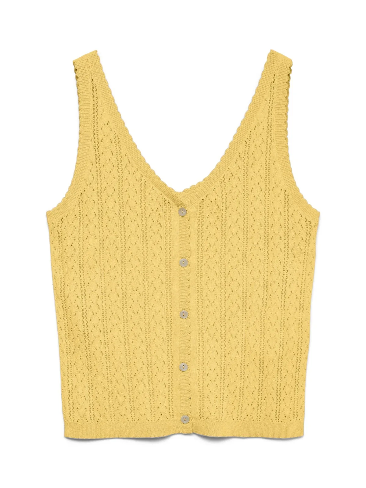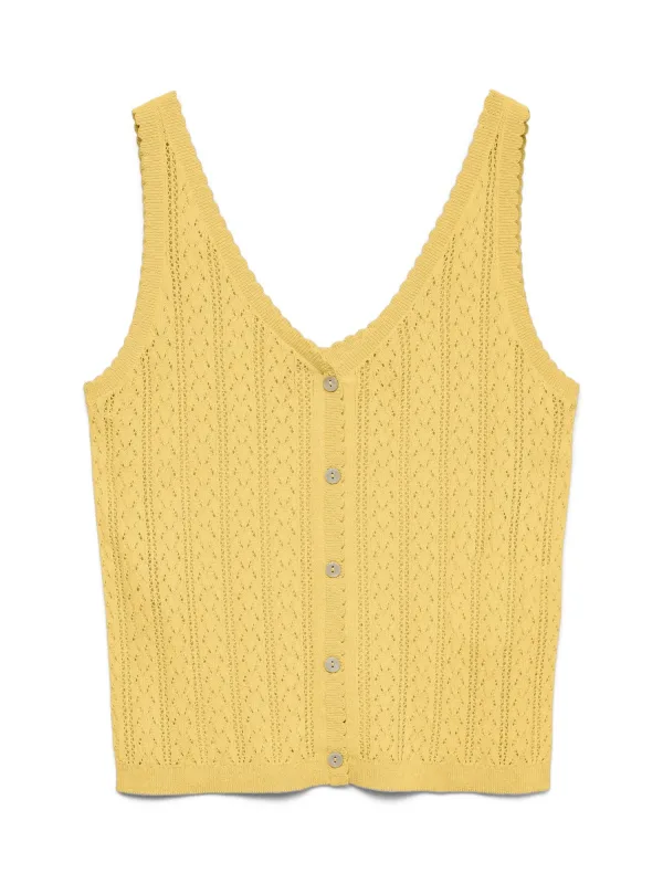 Design: Knop placket, Geribd ceintuurtje, Diepe snit/decolleté, Geschulpte zoom; Type sluiting: Knoopsluiting; Materiaal: Gerecycled materiaal; Halstype: V-hals; Motief: Effen; Details: Mesh; Extra's: Visnet brei, Voelt zacht aan; Pasvorm: Normale pasvorm; Armlengte: Mouwloos; Lengte: Normale lengte