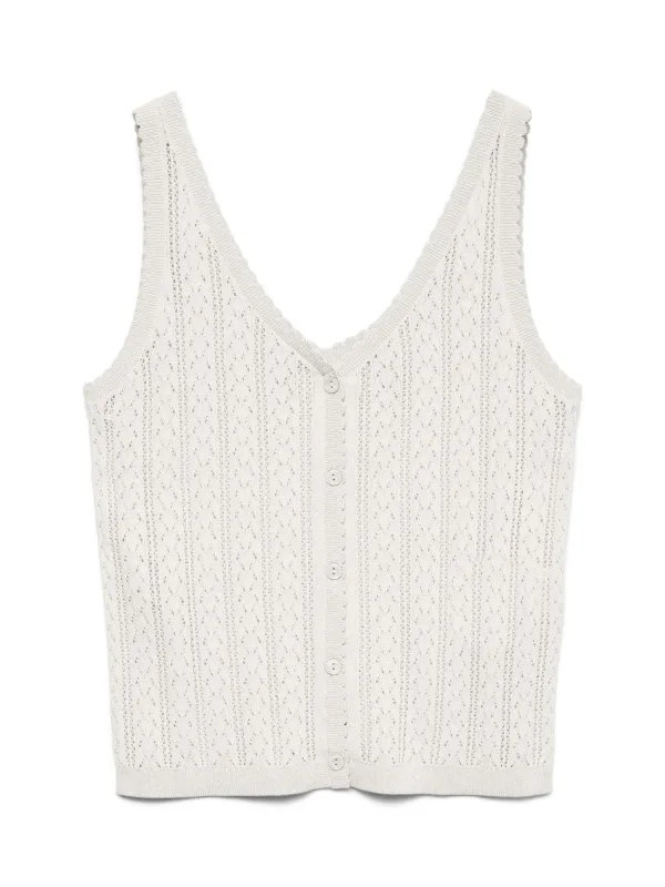 Design: Rechte zoom, Diepe snit/decolleté; Type sluiting: Knoopsluiting; Materiaal: Gerecycled materiaal; Halstype: V-hals; Motief: Effen; Details: Mesh; Extra's: Fully fashioned, Met textuur; Pasvorm: Normale pasvorm; Armlengte: Mouwloos; Lengte: Normale lengte
