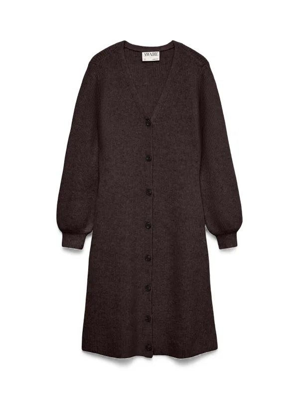 Design: Gevoerde zoom/rand; Type sluiting: Knoopsluiting; Materiaal: Knitwear; Halstype: V-hals; Motief: Effen; Extra's: Op staal naden; Lengte: Knielengte; Pasvorm: Losse pasvorm; Armlengte: Lange mouw
