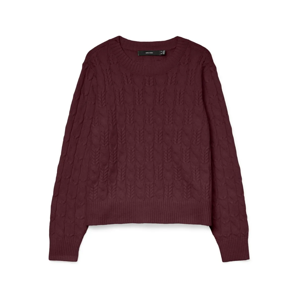 Gebreide pullover voor dames van Vero Moda;Model 'Aries';Look: effen;Pasvorm: Regular fit ;Motief: Kabelpatroon;Kraagmodel: Hoge ronde hals;Hals: ronde hals;Mouwvorm: lange mouwen;Mouwboord: geribd ;Rompzoom: geribd;Materiaalverwerking: Knitwear