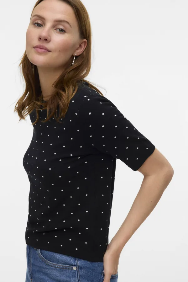 Design: Geribbelde kraag, Geribd ceintuurtje, Overcut schouder; Materiaal: Knitwear; Halstype: Ronde hals; Motief: Gestippeld; Extra's: All-over patroon, Voelt zacht aan; Pasvorm: Slanke pasvorm; Armlengte: Kwartmouw; Lengte: Korte pasvorm