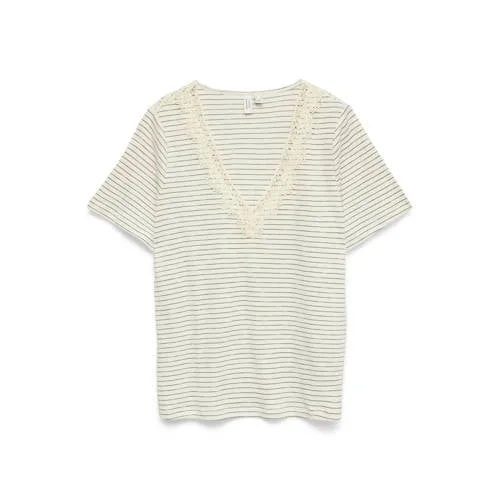 VERO MODA gestreepte gestreept T-shirt met lurex ecru Prijzen