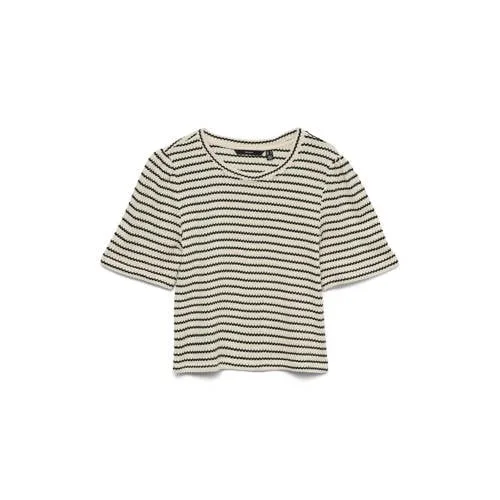 Deze gestreepte dames top van VERO MODA is een lichte, gebreide basic die je het hele seizoen draagt. De beige/zwart gestreepte print geeft direct een moderne, maar rustige uitstraling. De ronde hals en korte, rechte mouwen zorgen voor een tijdloos silhouet dat makkelijk combineert met je favoriete jeans, pantalon of rok.Gebreide strepen voor elke dag Gebreide top met streepprint in beige/zwart voor een rustige, maar opvallende look Korte, rechte mouwen die comfortabel vallen rond je armen Ronde hals die mooi aansluit zonder te hoog te zitten Gemaakt van 75% katoen voor een zachte touch op de huid Onderdeel van de 'Daily' collectie, ideaal voor alledaagse outfits Dit artikel valt normaal, waardoor je gewoon je gebruikelijke maat kunt kiezen Handwas, niet strijken en niet in de droogtrommel voor het mooiste behoud van de stofMakkelijk te stylen in het voorjaarDeze top past goed bij het lente seizoen. Draag de gebreide streep met een lichte jeans en sneakers voor een ontspannen dag, of combineer met een zwarte pantalon voor een wat gekledere look. De neutrale kleuren maken het eenvoudig om te matchen met de rest van je garderobe.VERO MODA: modieuze basics voor elke dagVERO MODA staat bekend om toegankelijke mode die goed aansluit op de trends van nu. De collecties bieden een brede keuze aan draagbare items die je eenvoudig met elkaar combineert. Zo stel je met weinig moeite outfits samen die geschikt zijn voor werk, vrije tijd en alles daartussenin.Een comfortabele, draagbare top die je zo uit de kast pakt voor een complete look.