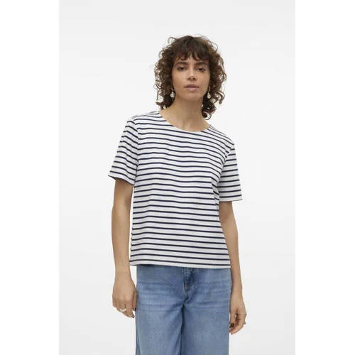 VERO MODA gestreepte top VMABBY ecru/marine