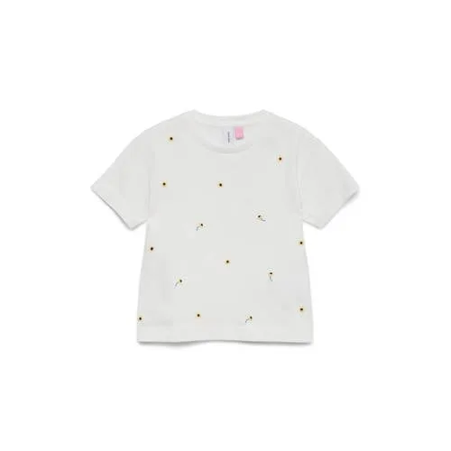 Dit wit katoenen T-shirt voor meisjes van VERO MODA GIRL is een praktische basic met een speelse twist. De bloemenborduursels aan de voorzijde geven het shirt een zachte, preppy uitstraling, terwijl de witte kleur zich eenvoudig laat combineren. Gemaakt van 100% katoen voelt het materiaal zacht en soepel aan, geschikt voor schooldagen en vrije tijd.Details die het verschil maken Gemaakt van 100% katoen, voor een zachte touch op de huid Korte, rechte mouwen, prettig voor dagelijks gebruik Ronde hals, makkelijk aan en uit te trekken Bloemenborduursels voor een subtiel, meisjesachtig detail Geen zakken, waardoor het shirt strak en eenvoudig oogt Maatadvies: dit T-shirt valt normaal Geschikt voor schoolkind en tiener, uit de preppy collectie Onderhoud: handwas, niet strijken en niet in de droogtrommelVoor school, weekend en alles ertusseninDit witte T-shirt combineert makkelijk met een jeans, rok of short. De lichte stof en korte mouwen maken het geschikt voor verschillende seizoenen, met in de winter een vest of trui erover. Zo is dit shirt het hele jaar door te dragen.VERO MODA GIRL voor moderne meidenVERO MODA GIRL is de jongere lijn van VERO MODA, speciaal ontwikkeld voor meisjes die houden van eigentijdse mode. De collecties sluiten aan bij de stijl van nu, met aandacht voor draagbare ontwerpen en herkenbare details. Zo wordt kiezen voor dit T-shirt een logische stap in een moderne garderobe.Een zachte basic met subtiele details die makkelijk in de dagelijkse outfits past.
