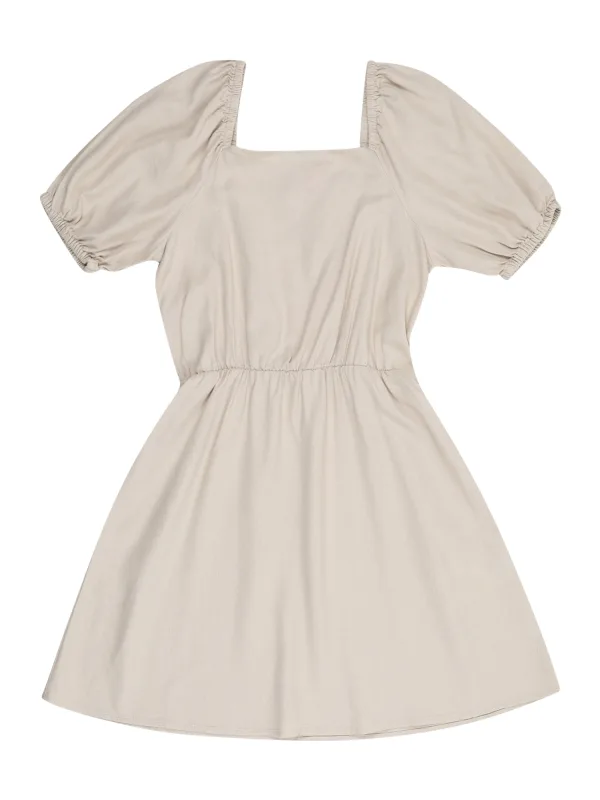 Design: Elastische taille/zoom, Pofmouwen; Materiaal: Viscose; Halstype: Carréhals; Motief: Effen; Details: Gedrapeerd; Extra's: Gladde stof, Lichte stof; Lengte: Knielengte; Pasvorm: Normale pasvorm; Armlengte: Halve mouw