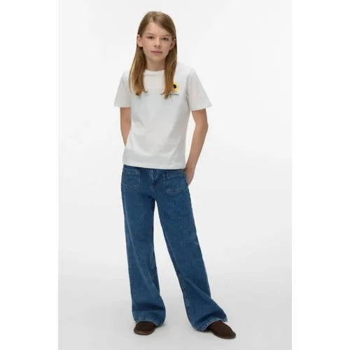 Fris, speels en makkelijk te combineren, dit VERO MODA GIRL meisjes T-shirt VMULLA PAULINA is een fijne basic voor elke dag. Het witte T-shirt heeft een vrolijke printopdruk en subtiele borduursels op de voorkant, waardoor het meteen opvalt zonder druk te zijn. Dankzij de regular fit en de ronde hals zit het shirt comfortabel en staat het mooi bij verschillende lichaamstypes.Comfortabele basic met leuke details Gemaakt van 100% katoen, voelt zacht aan op de huid en is prettig om de hele dag te dragen Regular fit, valt normaal en geeft genoeg bewegingsvrijheid om te spelen en te ontdekken Korte, rechte mouwen voor een casual look die goed past bij elk seizoen Printopdruk en borduursels zorgen voor een speels en stijlvol detail op het witte shirt Ronde hals, makkelijk aan en uit te trekken en fijn in het dagelijks gebruikMakkelijk te dragen op school en in het weekendDit T-shirt is geschikt voor schooldagen, logeerpartijtjes of een ontspannen dag thuis. Het witte katoen is eenvoudig te combineren met een jeans, rok of short en kan zowel onder een vest als los gedragen worden.VERO MODA GIRL: mode voor jonge trendliefhebbersVERO MODA GIRL vertaalt populaire trends naar draagbare kinderkleding. De collecties zijn afgestemd op het actieve leven van meiden, met aandacht voor pasvorm, comfort en een moderne uitstraling. Zo ontstaat kleding die past bij elke dag, zonder dat dit ten koste gaat van gemak.Een veelzijdig T-shirt dat elke outfit rustig en speels afwerkt.