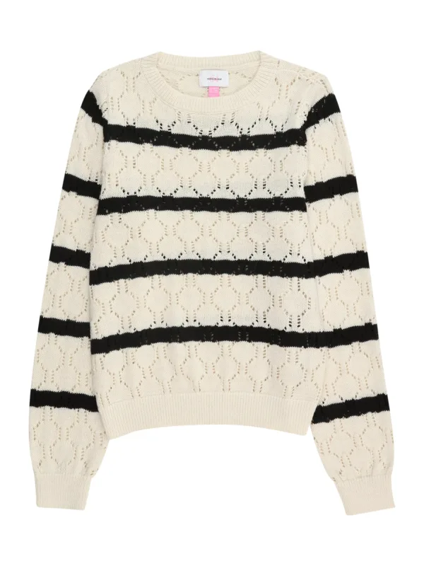 Design: Geribbelde kraag, Geribd ceintuurtje; Materiaal: Knitwear; Halstype: Ronde hals; Motief: Gestreept; Details: Mesh; Extra's: All-over patroon, Met textuur; Pasvorm: Normale pasvorm; Armlengte: Lange mouw; Lengte: Normale lengte