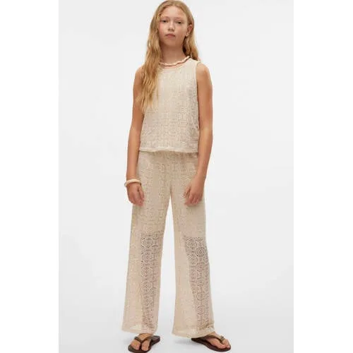 VERO MODA GIRL wide leg casual broek ecru gebreid Prijzen