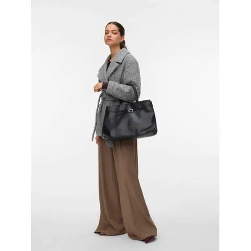 Voor je werkdag, citytrip of avond uit, deze zwarte dames handtas van VERO MODA is een praktische en stijlvolle keuze. Het grote formaat biedt genoeg ruimte voor je dagelijkse essentials, van tablet en portefeuille tot make-up etui en sleutels. De effen zwarte kleur met zilverkleurige details geeft een moderne, city smart uitstraling die makkelijk te combineren is met je garderobe.Praktische details voor elke dag Groot formaat tas, ideaal voor werk, stad en onderweg Kan zowel als handtas als schoudertas gedragen worden Afneembare schouderband voor extra draaggemak Niet-verstelbare schouderband voor een strakke, nette look Knoopsluiting aan de bovenkant voor snel openen en sluiten Effen zwarte kleur met zilverkleurige hardware voor een moderne stijl Gemaakt van een stevige stof die mooi in vorm blijft Onderdeel van de 'Daily' collectie, geschikt voor dagelijks gebruikHandig in gebruik, van ochtend tot avondDeze handtas past bij een werkoutfit met blazer, maar ook bij een casual jeans en sneakers. Door het ruime binnenvak neem je makkelijk alles mee wat je nodig hebt op een drukke dag. Draag de tas in de hand voor een geklede look of gebruik de schouderband als je je handen vrij wilt houden.VERO MODA als vertrouwd modemerkVERO MODA staat bekend om toegankelijke mode die goed aansluit op het dagelijkse leven. De tassen sluiten aan op actuele trends en zijn tegelijk makkelijk te combineren. Zo voeg je met dit ontwerp eenvoudig een stijlvolle, betrouwbare basic toe aan je tassencollectie.Een praktische tas die je dagen net wat georganiseerder en stijlvoller maakt.