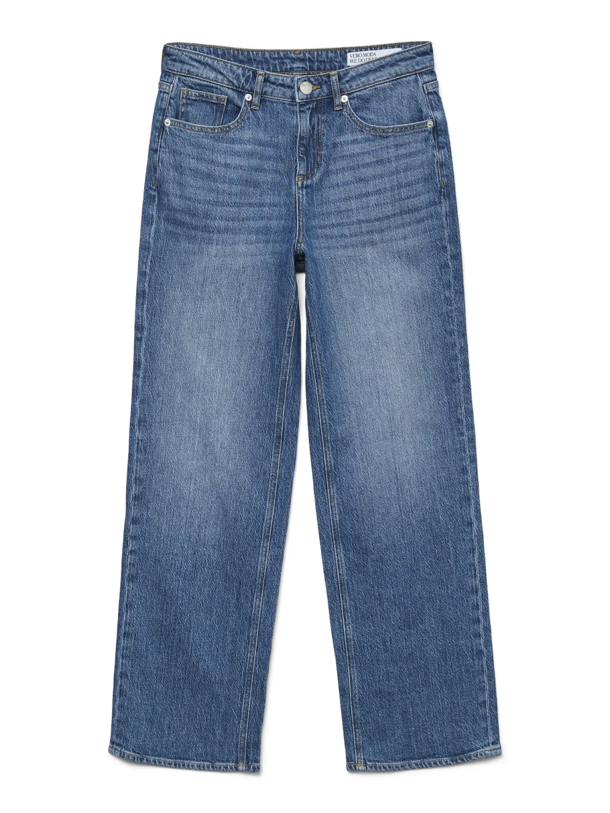 Design: 5-pocket-style; Type sluiting: Ritssluiting; Materiaal: Katoen; Motief: Effen; Extra's: Label patch/label flag, Riemlussen; Wassing: Blauw denim; Lengte: Lang/maxi; Pasvorm: Wide leg; Taillehoogte: Mid waist