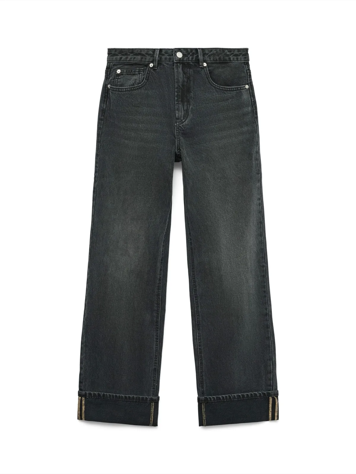 Design: Omgeslagen zoom, Ritssluiting, 5-pocket-style; Type sluiting: Ritssluiting; Materiaal: Denim; Motief: Effen; Extra's: Studs, Op staal naden, Vaste grip, Riemlussen; Wassing: Rinsed/dark washed; Lengte: Lang/maxi; Pasvorm: Regular; Taillehoogte: Mid waist