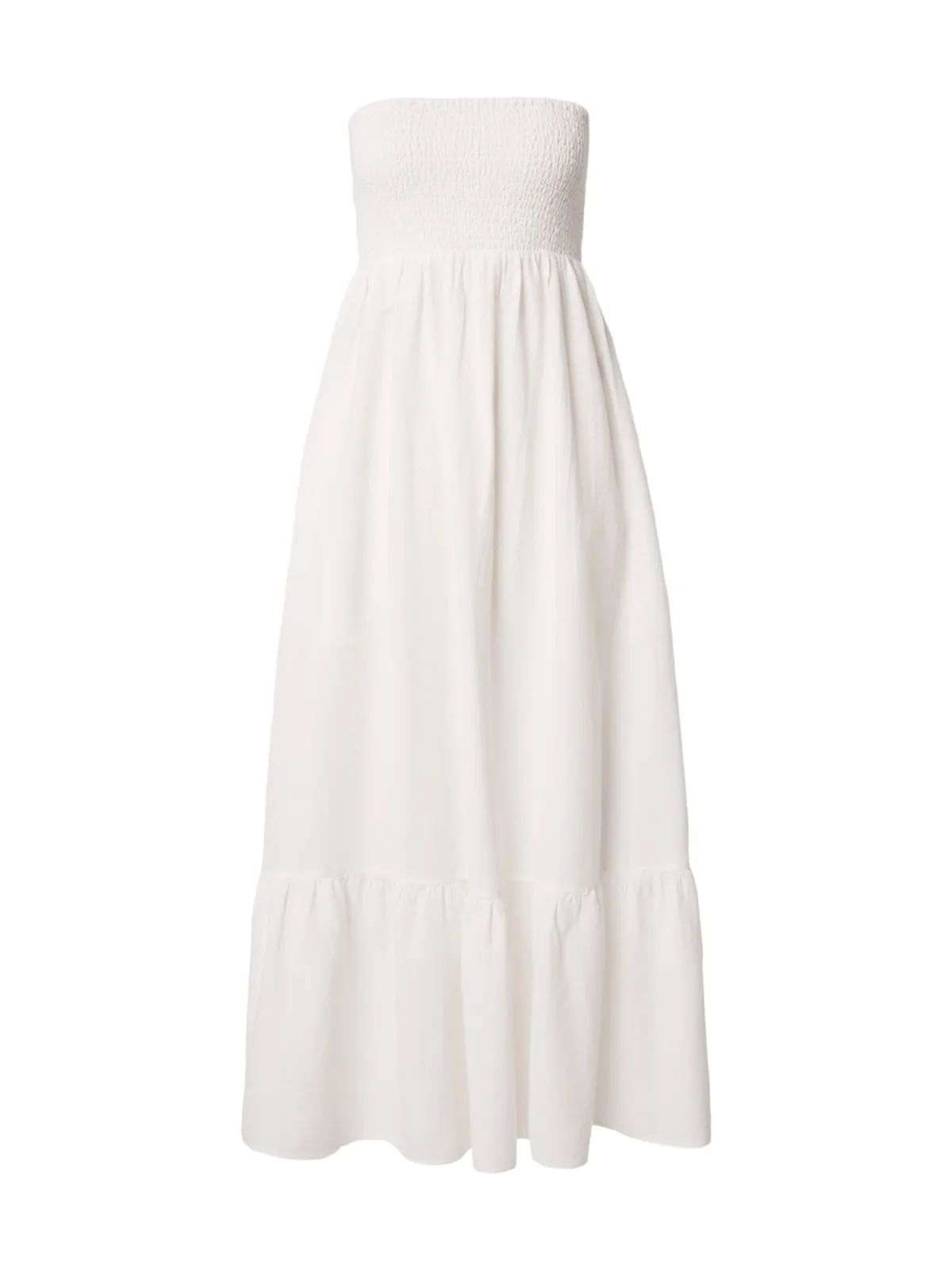 Design: Gevoerde zoom/rand, Rechte zoom; Materiaal: Viscose; Motief: Effen; Soort bandjes: Bandeau; Details: Volant, Gedrapeerd; Extra's: Op staal naden, Gladde stof; Lengte: 7/8 lengte; Snit: Uitlopend; Pasvorm: Normale pasvorm; Armlengte: Mouwloos