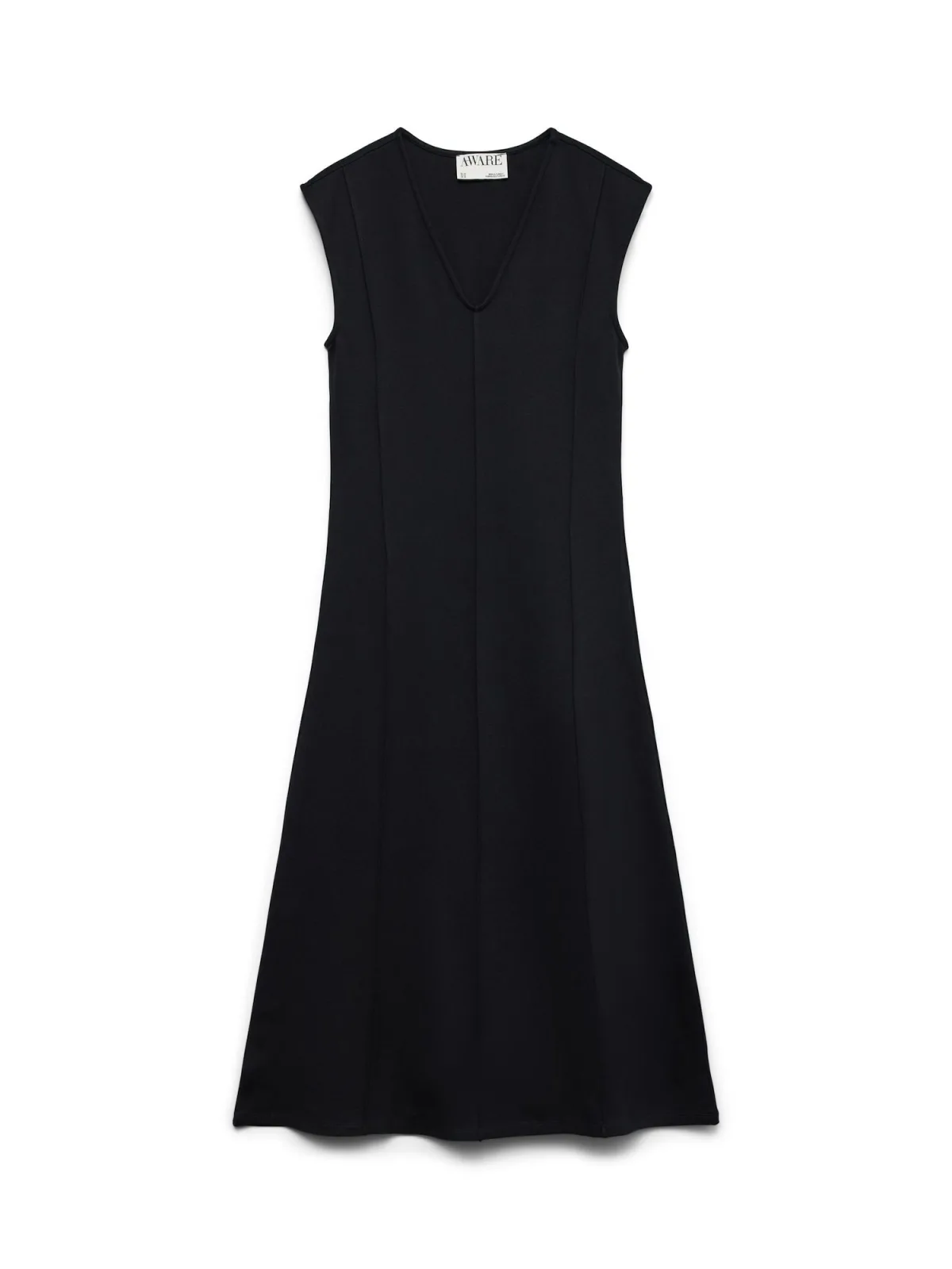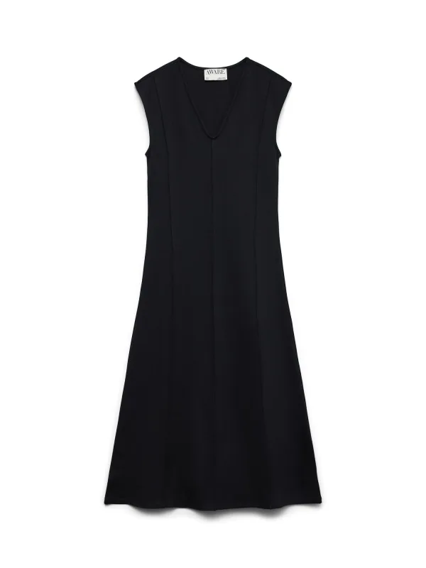 Design: Gevoerde zoom/rand; Materiaal: Viscose; Halstype: V-hals; Motief: Effen; Extra's: Op staal naden; Lengte: Knielengte; Pasvorm: Normale pasvorm; Armlengte: Mouwloos