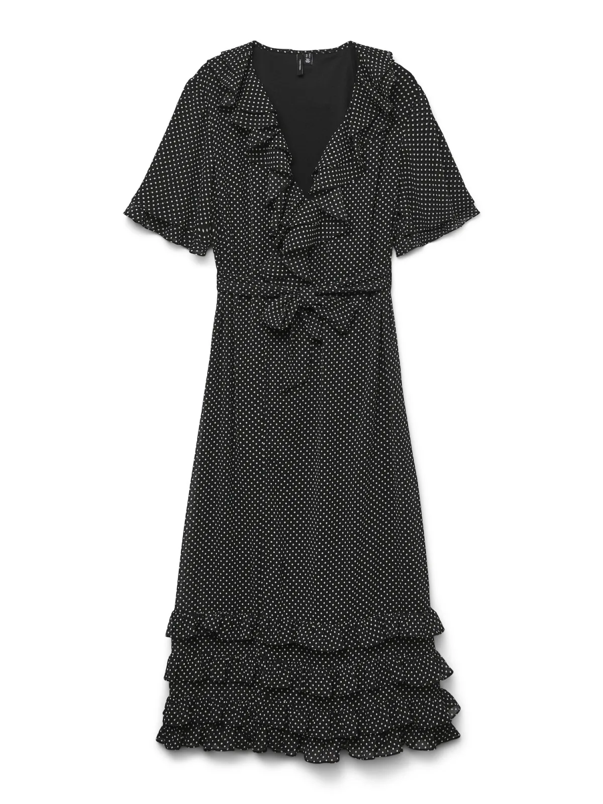 Halstype: V-hals; Motief: Gestippeld; Details: Ruches, Volant; Lengte: Lang/maxi; Pasvorm: Normale pasvorm; Armlengte: Halve mouw