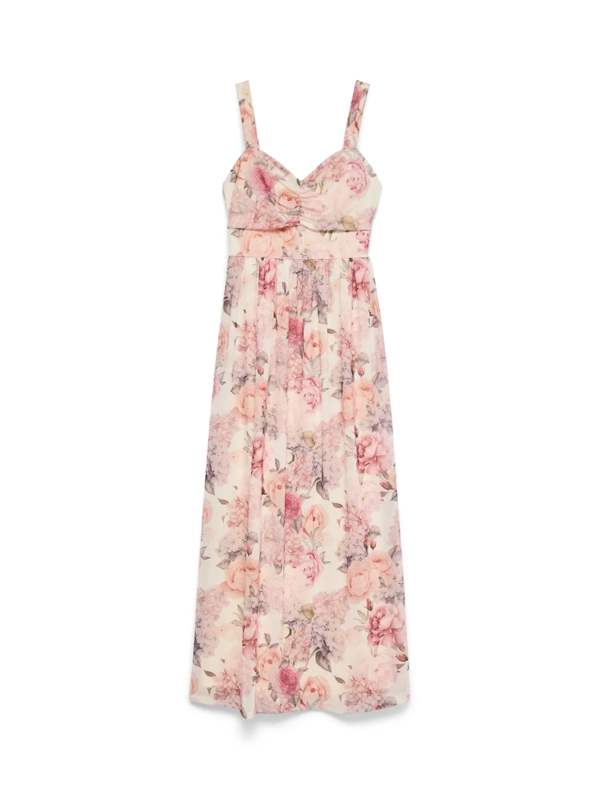 Design: Rechte zoom; Motief: Bloemenprint; Soort bandjes: Spaghettibandjes; Details: Gedrapeerd; Extra's: All-over patroon; Lengte: Lang/maxi; Snit: Uitlopend; Pasvorm: Wijde pasvorm; Armlengte: Mouwloos