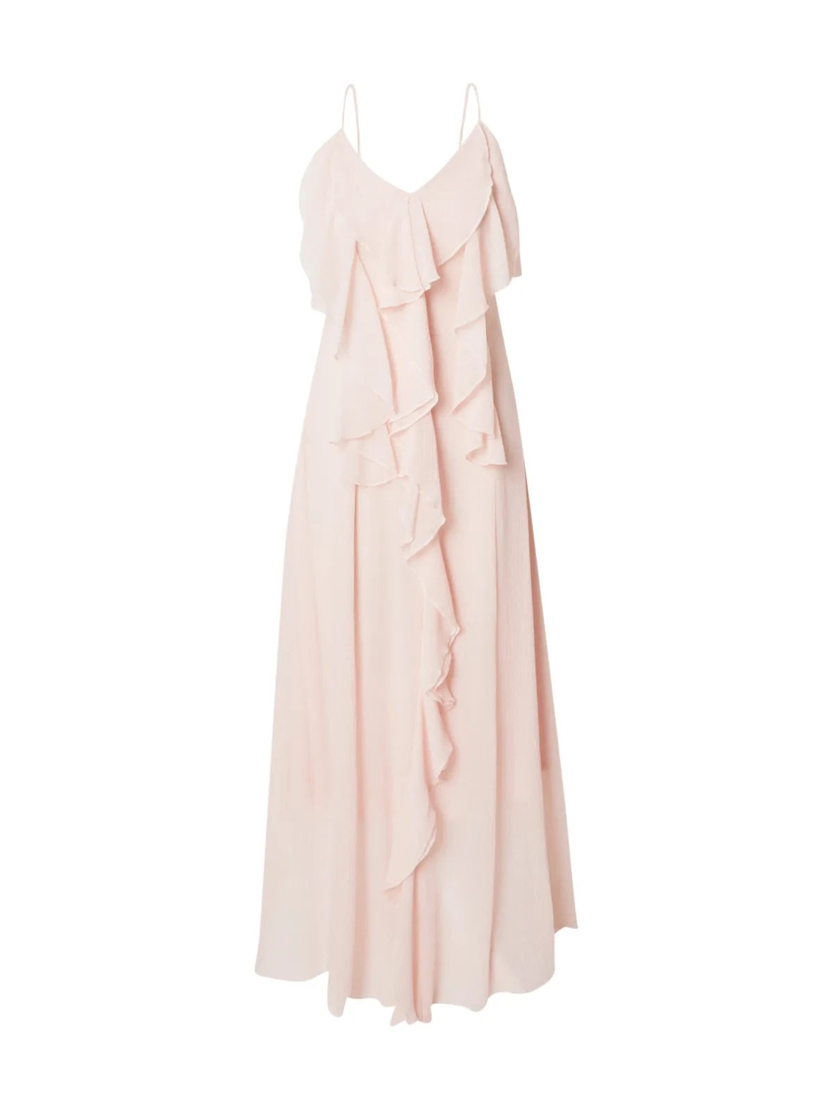 Design: Gevoerde zoom/rand, Diepe snit/decolleté; Halstype: V-hals; Motief: Effen; Soort bandjes: Spaghettibandjes; Details: Volant; Extra’s: Op staal naden, Lichte stof; Lengte: Lang/maxi; Snit: Uitlopend; Pasvorm: Normale pasvorm; Armlengte: Mouwloos