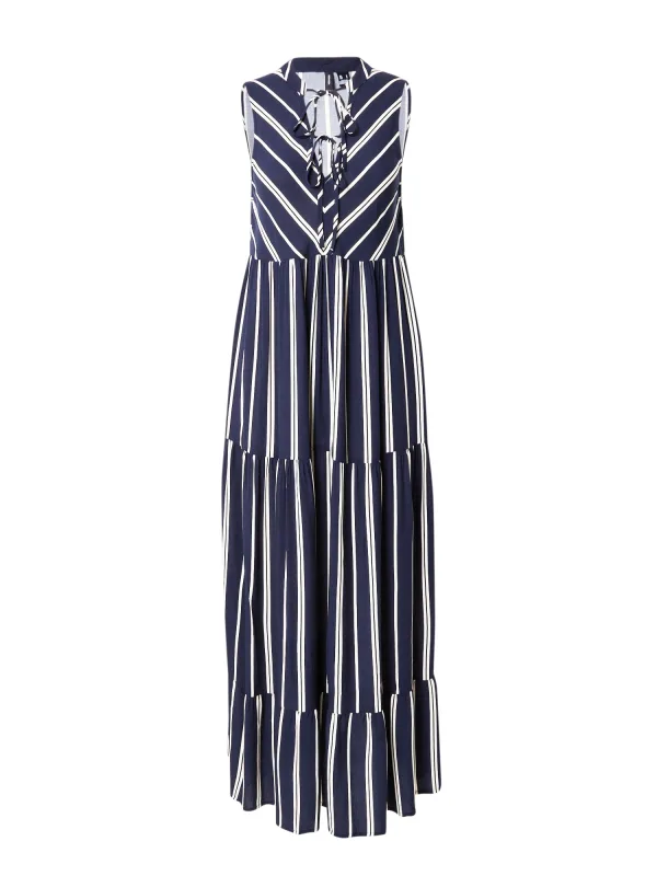 Design: Gevoerde zoom/rand, Om te knopen/binden; Materiaal: Viscose; Halstype: Uitgesneden hals; Motief: Gestreept; Details: Volant, Gedrapeerd; Extra's: All-over patroon, Gladde stof; Lengte: Lang/maxi; Snit: Getailleerd; Pasvorm: Normale pasvorm; Armlengte: Mouwloos